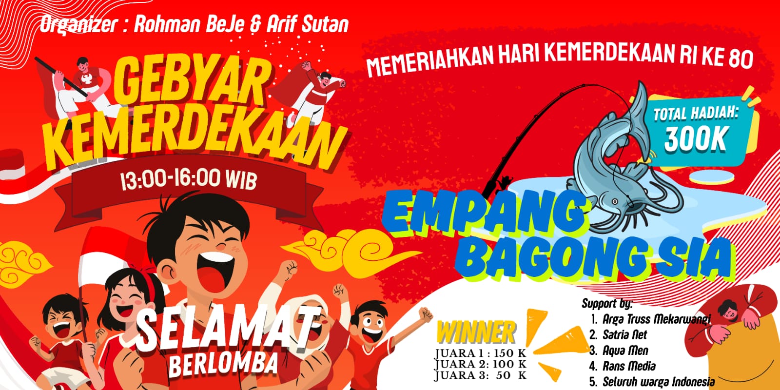 “Kami menggelar acara ini bertujuan agar kita dapat mempererat tali silaturahmi antar warga agar bisa berkumpul bersama-sama dalam memeriahkan HUT kemerdekaan yang ke 80 kami selaku panitia sangat bertrimakasi dan sangat meng’apresiasi untuk para peserta yang telah meluangkan waktu untuk dapat menghadiri acara perlombaan memancing ini dan tidak lupa untuk para donatur juga.